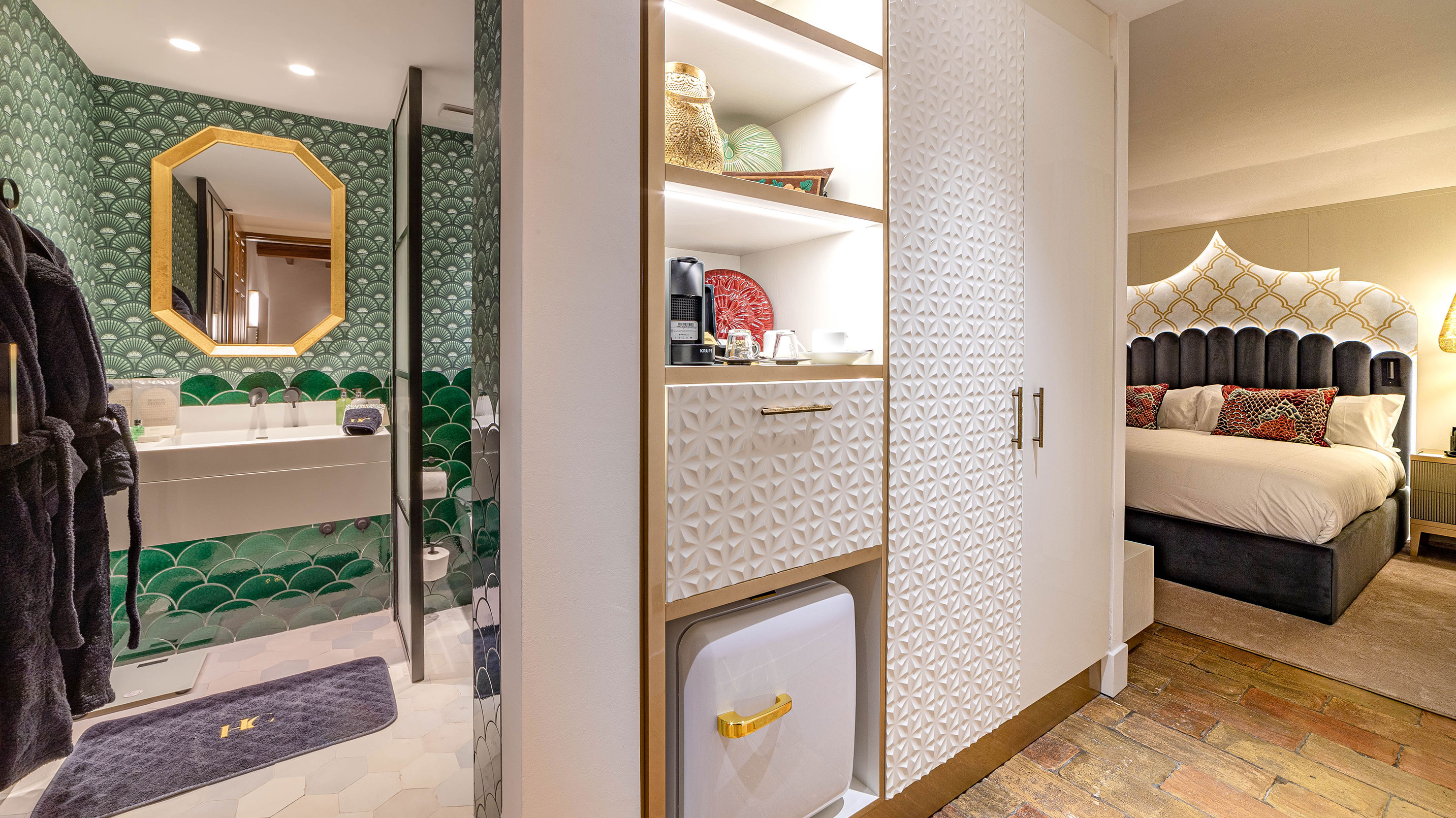 Hotel Claude Marbella captures the pure essence of Andalusia in seven guestrooms divided into three categories: Chic, Chic Superior, and Chic Suite. Hidden behind beautiful wood-carved doors, each room is inspired by a different province in Andalusia, transporting guests to every corner of the region. All have queen- or king-sized beds, a sofa, and a writing desk with high-speed internet. The bathrooms are decorated with patterned Andalusian tiles and are equipped with a walk-in rain shower.