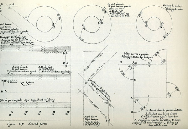 ![]() Engraving of voltes exercise from Le Maneige Royal |