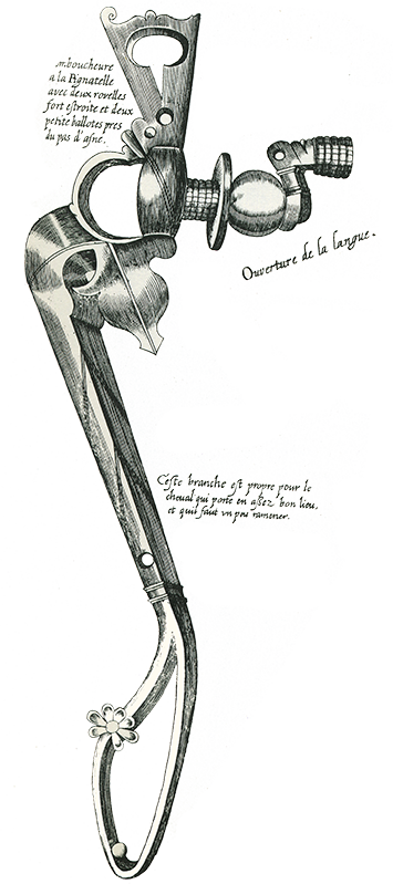 ![]() Engraving of horse bit from Le Maneige Royal |