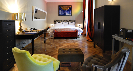 Adorned in luxurious furnishings and encompassed in distinctive aesthetic touches, all accommodations are soundproofed and include marbled bathrooms and exquisite parquet wood flooring. Most guestrooms provide a privileged panoramic view of the Galleria’s interior and mosaic flooring via large shuttered windows. Guests may choose from Courtyard Deluxe and Gallery Deluxe guestrooms and, for the pinnacle of accommodation, the Junior Suite and its private balcony. A multilingual staff, butler service, 24-hour concierge, and complimentary wireless Internet access ensure an enjoyable stay for travelers domestic and international alike.