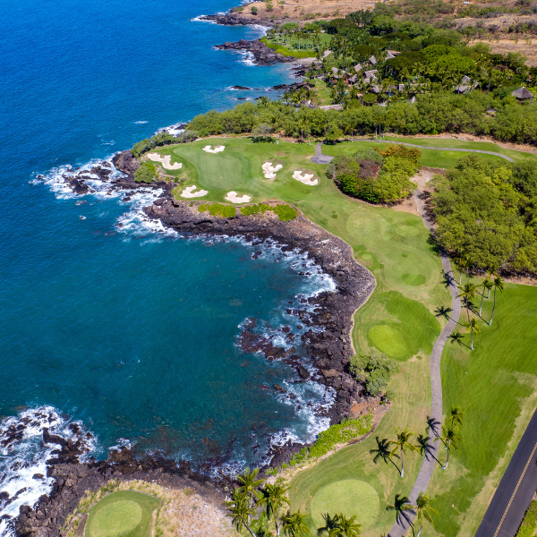 The Mauna Kea Golf Course was the first resort golf course on the island of Hawaii and the first course built on an ancient lava flow. This award-winning championship golf course at the Mauna Kea Beach Hotel, in Kohala Coast, Hawaii, has led the way in golf course beauty and design in Hawaii since its debut in December 1964—just before the hotel officially opened in 1965. In a made-for-television event, the course was debuted by golf’s “Big Three:” Arnold Palmer, Jack Nicklaus, and Gary Player. Since that premiere, the course has welcomed celebrities, professionals, and amateur golfers who recognize it as a “bucket list,” must-play course. Specifically, guests and locals continue to come back to this course just to see the epic over-the-ocean third hole. Golf course architect Robert Trent Jones, Sr. designed the course and developed a new technique that transformed the rocky surface into soil. The course features high-efficiency ultra-dwarf Tifeagle Bermuda Grass on the greens and Tifway 419 hybrid Bermuda Grass on the tees, fairways, and roughs. Rees Jones, son of Robert Trent Jones, Sr., has continued to upgrade the course to ensure it offers challenging, memorable play to all player levels. The course’s 99 bunkers and undulating greens present a challenge for the most seasoned golfers and a memorable day of play for leisurely golfers. Its signature over-the-ocean par-3 Hole 3 is among the most daunting, photographed and awarded par-3 holes in the world. It is a stunning tee shot of 272 yards from the championship box to the green. For something different, Mauna Kea Beach Hotel was the first resort on the Big Island to secure their own fleet of “GolfBoards,” designed to make golfers feel like they are “Surfing the Earth.” |