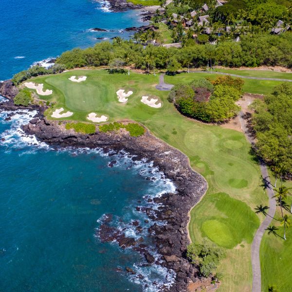 The Mauna Kea Golf Course was the first resort golf course on the island of Hawaii, and the first course built on an ancient lava flow. This award-winning championship golf course at the Mauna Kea Beach Hotel, on the Kohala Coast of Hawaii, has led the way in the beauty and design of golf courses in Hawaii since its debut in December 1964—just before the hotel officially opened in 1965. In a made-for-television event, the course was debuted by golf’s “Big Three:” Arnold Palmer, Jack Nicklaus, and Gary Player. Since that premiere, the course has welcomed celebrities, professionals, and amateur golfers who recognize it as a “bucket list,” must-play course. Specifically, guests and locals continue to come back to this course just to see the epic over-the-ocean third hole. Golf course architect Robert Trent Jones Sr. designed the course and developed a new technique that transformed the rocky surface into soil. The course features high-efficiency, ultra-dwarf TifEagle Bermuda grass on the greens and Tifway 419 hybrid Bermuda grass on the tees, fairways, and roughs. Rees Jones, son of Robert Trent Jones Sr. has continued to upgrade the course to ensure it offers challenging, memorable play for all player levels. The course’s 99 bunkers and undulating greens present a challenge for the most seasoned golfers, and a memorable day of play for leisurely golfers. Its signature over-the-ocean par-3 Hole 3 is among the most daunting, photographed, and awarded par-3 holes in the world. It is a stunning tee shot of 272 yards from the championship box to the green. Mauna Kea Beach Hotel was inducted into Historic Hotels of America in 2016. |
