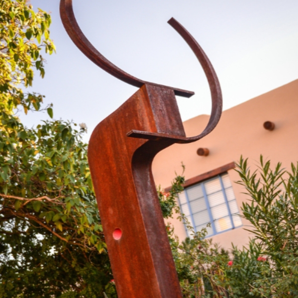 Surrounded by the stunning Santa Catalina Mountain Range, Tucson, Arizona’s Hacienda del Sol Guest Ranch Resort complements natural beauty with a collection of welded steel sculpture displayed throughout the grounds. The collection was curated in part by Jeff Timan and Robyn Kessler. The couple are long-term stewards of Hacienda del Sol (Timan is Director of Gardening & Art, as well as a Resort Partner, and Kessler is Gift Shop Manager). The collection features artists such as Rigsby Frederick, Steven Derks, Carlos Carulo, and Lou Pearson. Guests are invited to stroll through the grounds and enjoy over 100 pieces of artwork installed throughout the 34-acre resort. The most distinctive pieces are two original sculptures by the late Lou Pearson and one by Carlos Carulo. Contemporary artist Carulo found a prominent place in the resort's gardens for his sculpture The Bull, which is placed so that it appears to protect the Terraza Garden Patio, the open-air casual restaurant. Across Hacienda del Sol Guest Ranch Resort, guests can find sculptures, paintings, pottery, photography, and tilework perfectly accenting and enhancing the natural landscape of the Sonoran Desert and culture of the Southwest. The art on display is often inspired by the culture of the Southwest region, with many pieces exhibiting traces of Native American and Mexican influences as well as more modern contemporary work from celebrated artists. Self-guided tours of the ever-rotating collection are available to guests upon request. Hacienda del Sol Guest Ranch Resort was inducted into Historic Hotels of America in 2009. |