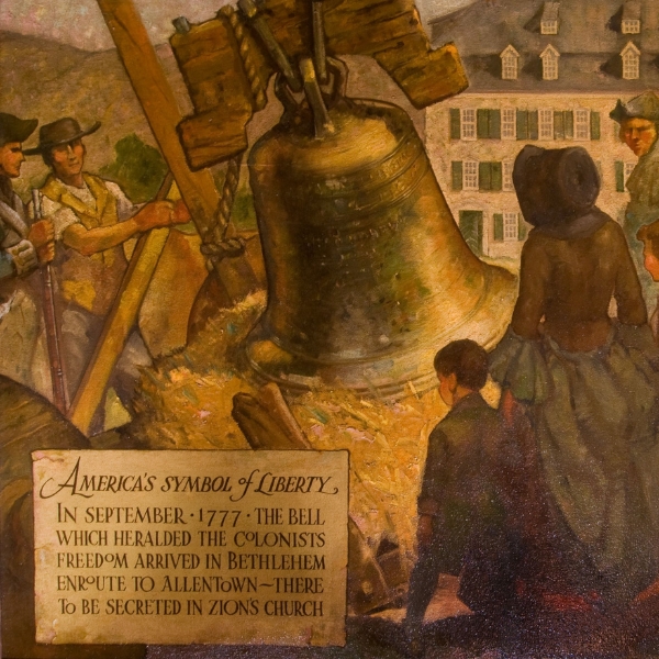 Historic Hotel Bethlehem in Bethlehem, Pennsylvania, is home to eight murals painted by George Gray in 1936. Seven of these murals currently hang proudly in the Mural Ballroom, and the eighth hangs directly outside of the Mural Ballroom. In 1936, the American Hotels Corporation took over the management of Hotel Bethlehem and commissioned George Gray to paint the history of Bethlehem for this hotel. It was part of a vast new mural program for the corporation's upscale hotels. Measuring up to 30 feet wide, the artworks became minor landmarks in their cities. The murals painted for Historic Hotel Bethlehem depict stories related to the historic city’s past: “The Walking Purchase (1737)"; “The Founding of Bethlehem (1741)”; “General Benjamin Franklin’s Visit (1755)”; “The Liberty Bell in Bethlehem (1777)”; “General Casimir Pulaski (Father of the American Calvary) visit (1778)”; “Asa Packer & the founding of Lehigh University (1865)”; “Iron & Steel Industry”; and an eighth mural of a map of The Walking Purchase. Gray painted more than 200 murals in his lifetime, most of which were commissioned by the American Hotels Corporation. Today, only 26 of his hotel murals survive. The murals at Historic Hotel Bethlehem are the only set in its original location and one of only two complete surviving sets painted by Gray. Historic Hotel Bethlehem is located within a National Historic Landmark District and is adjacent to a UNESCO World Heritage Site. The hotel was inducted into Historic Hotels of America in 2002. |