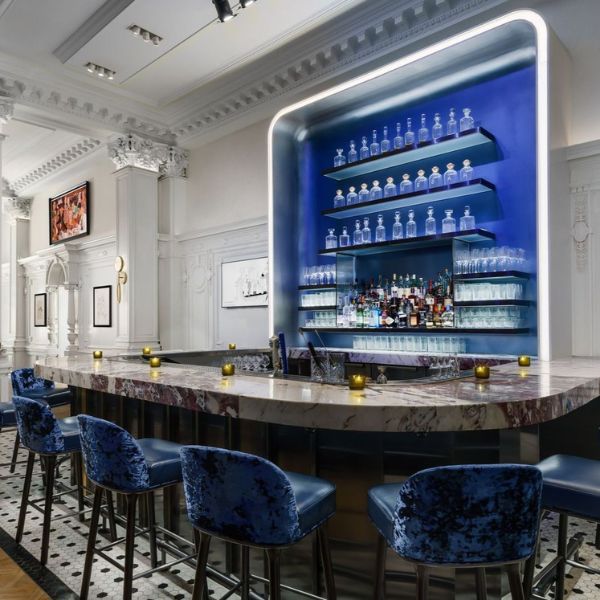 Blue Bar | Signature Drinks: The Hamlet and Dorothy Parker The Blue Bar at The Algonquin Hotel Times Square, Autograph Collection is not just a storied bar: it is a living piece of New York City’s cultural fabric. First opening in 1933, just after the repeal of Prohibition, the Blue Bar quickly became the after-hours home to some of the 20th century’s most iconic artists, writers, and performers. The Blue Bar’s legacy is intertwined with the Algonquin Round Table, the legendary group of writers, critics, and wits who frequented the hotel and helped define American literary culture. Although their debates and bon mots were often shared in the dining room, their evenings routinely spilled into the Blue Bar, where the creative conversations continued over cocktails. Served today, the Dorothy Parker cocktail pays homage to one of the most notable members of the Algonquin Round Table. But why is the bar blue? John Barrymore, a frequent guest and one of the era’s most celebrated actors, famously persuaded the hotel to install blue lighting gels above the bar’s fixtures. He believed that the cooler hues were more flattering for a pale complexion—especially his own. This theatrical touch gave the bar its name and signature glow, which remains a beloved feature to this day. The Hamlet cocktail honors one of Barrymore’s most famous roles. Today, visitors can enjoy the unmistakable caricatures of Al Hirschfeld, the legendary artist and longtime Algonquin regular, whose whimsical line drawings immortalized Broadway’s biggest stars. In a city constantly evolving, the Blue Bar remains a timeless refuge, both intimate and grand, where the city’s cultural heritage is not only preserved, but experienced. A stop at the Blue Bar is an opportunity to sip where history was made and sit in the very space that helped shape New York’s literary and theatrical identity. The Algonquin Hotel Times Square, Autograph Collection was inducted into Historic Hotels of America in 2023 and dates to 1901. |