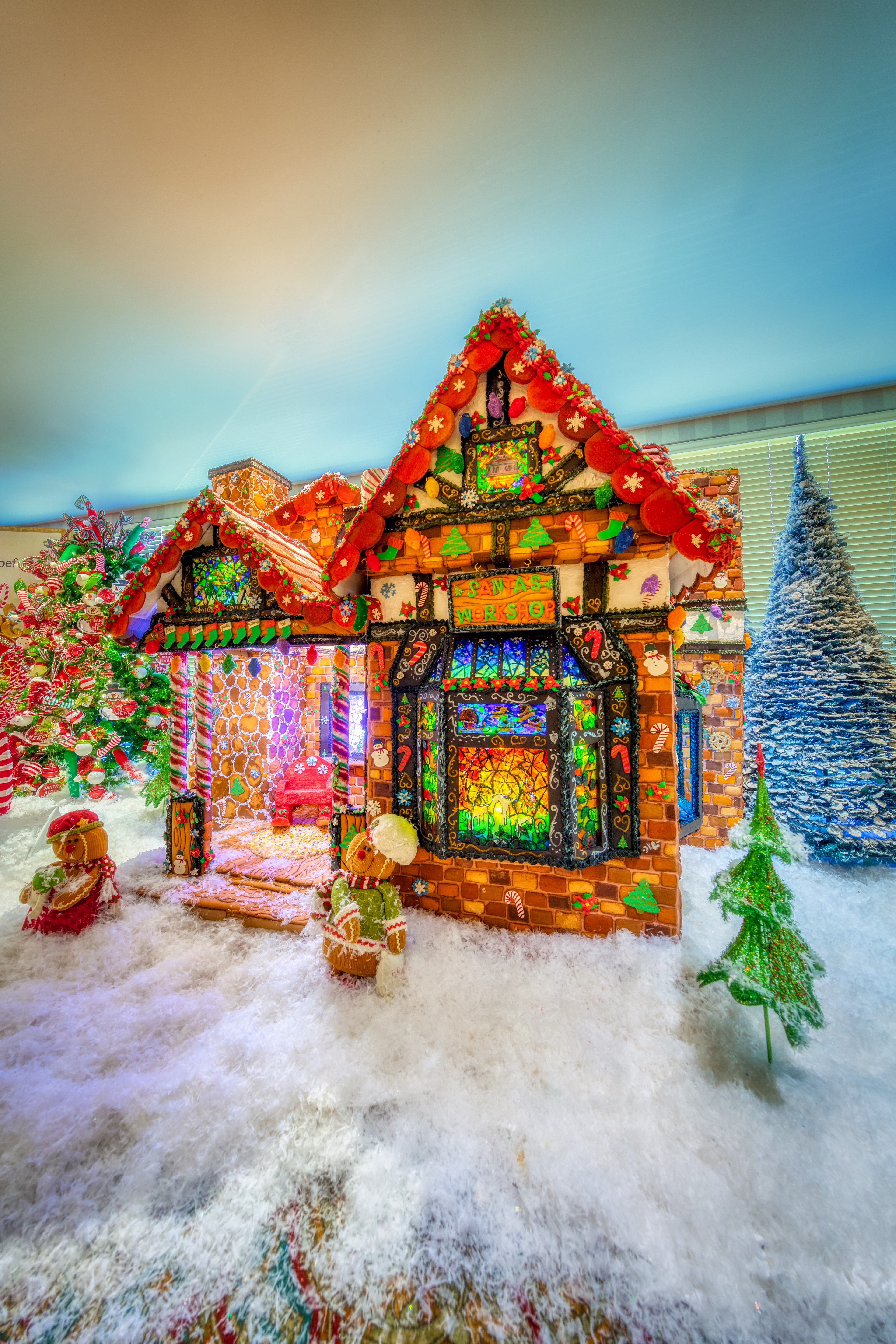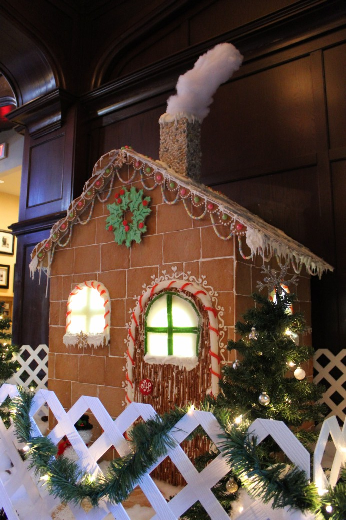 | Williamsburg Lodge, Autograph Collection, and Colonial Houses (1750) Williamsburg, Virginia In 2019, The Williamsburg Lodge showcased a life size gingerbread house. Located in the lobby of the hotel, it took 15 people over 330 hours to bake, construct, and decorate. Approximately 150 pounds of icing, 55 pounds of candy, and a whopping 375 pounds of gingerbread were used to make this gingerbread creation come to life. The interior of the gingerbread house was complete with a mantelpiece, and a Christmas tree. |