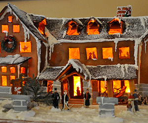| The Settlers Inn (1927) Hawley, Pennsylvania In previous years, historic Settlers Inn had an annual gingerbread display that guests have come to know and love throughout the years. The windows of the gingerbread house had intricate details with noted similarities to the Inn. This replica of the hotel featured most details of the hotel including the sign out front. It took three days to bake and assemble about 28 hours of total manpower to put together this replica gingerbread creation. |