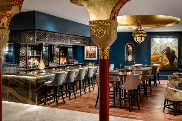 Which historic hotel’s grand architecture and gold-leaf ceiling are beautiful examples of Moorish Revival-style design?