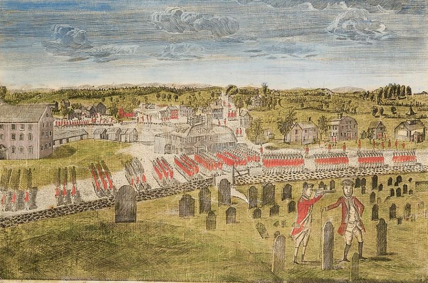 The presence of the arsenal eventually attracted the ire of Royal Governor General Thomas Gage, who had been dispatched from Great Britain to prevent the colonists from erupting in open rebellion during the 1770s. By this point, people throughout Massachusetts had grown enraged over a series of harsh taxes and laws that British Parliament had passed without their consent. To keep the colonists in line, Gage sent a column of soldiers to Concord with order to destroy the munitions. Thanks to the efforts of Patriots like Dr. Joseph Warren, Paul Revere, and William Dawes, militiamen living in various towns began marshalling to stop the British advance. The two sides would come to blows on April 19, 1775, during what became known as the Battles of Lexington and Concord. After fighting off a company of militia in Lexington, the British arrived in Concord and to set fire to several buildings that still housed weapons. In response, more American militiamen confronted the British a half-mile outside of town at the North Bridge. The Americans subsequently forced the British out of Concord and chased them all the way back to Boston under heavy attack. The militiamen proceeded to besiege Boston over the next ten months, marking the beginning of the American Revolutionary War.