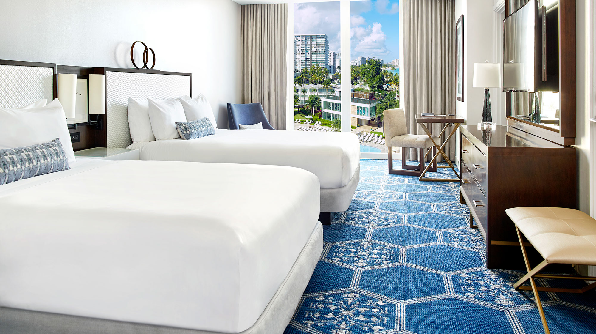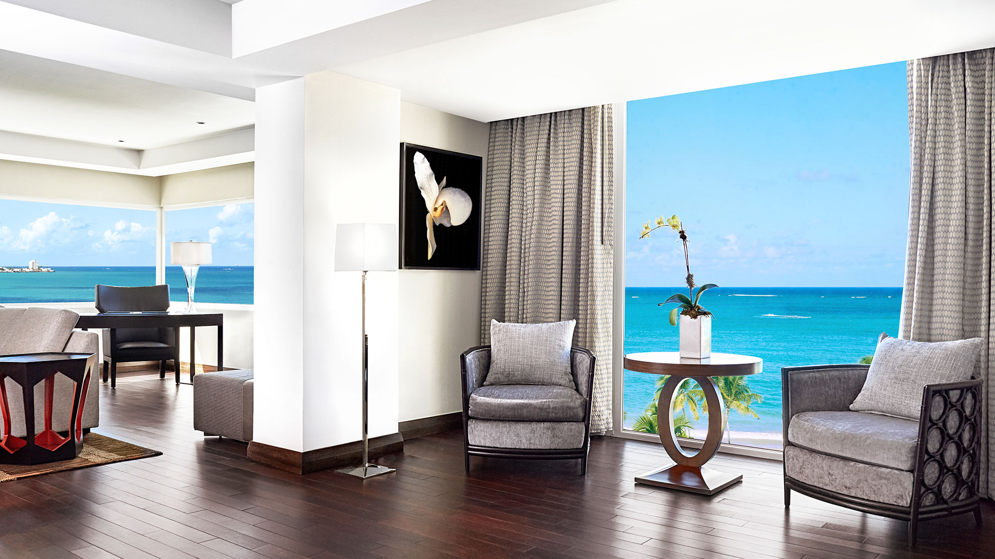 The guestrooms, suites, and villas at Fairmont El San Juan Hotel include stunning features like floor-to-ceiling windows and balconies that allow guests to feel truly immersed in island life. Each space is decorated with a crisp and clean coastal palette and wood accents that create a comfortable respite for every guest.