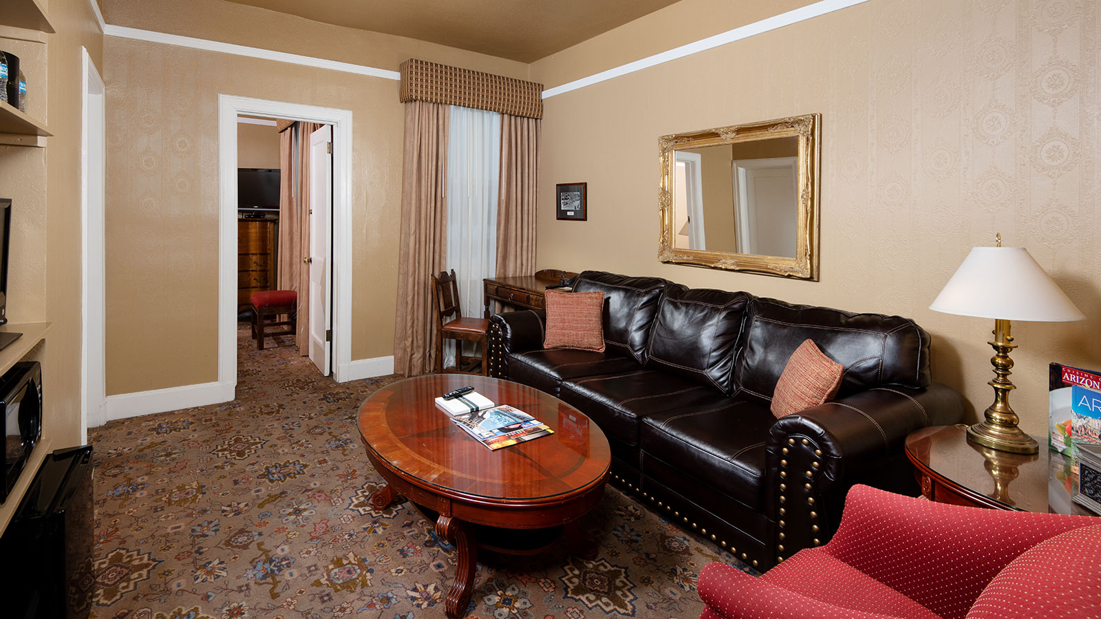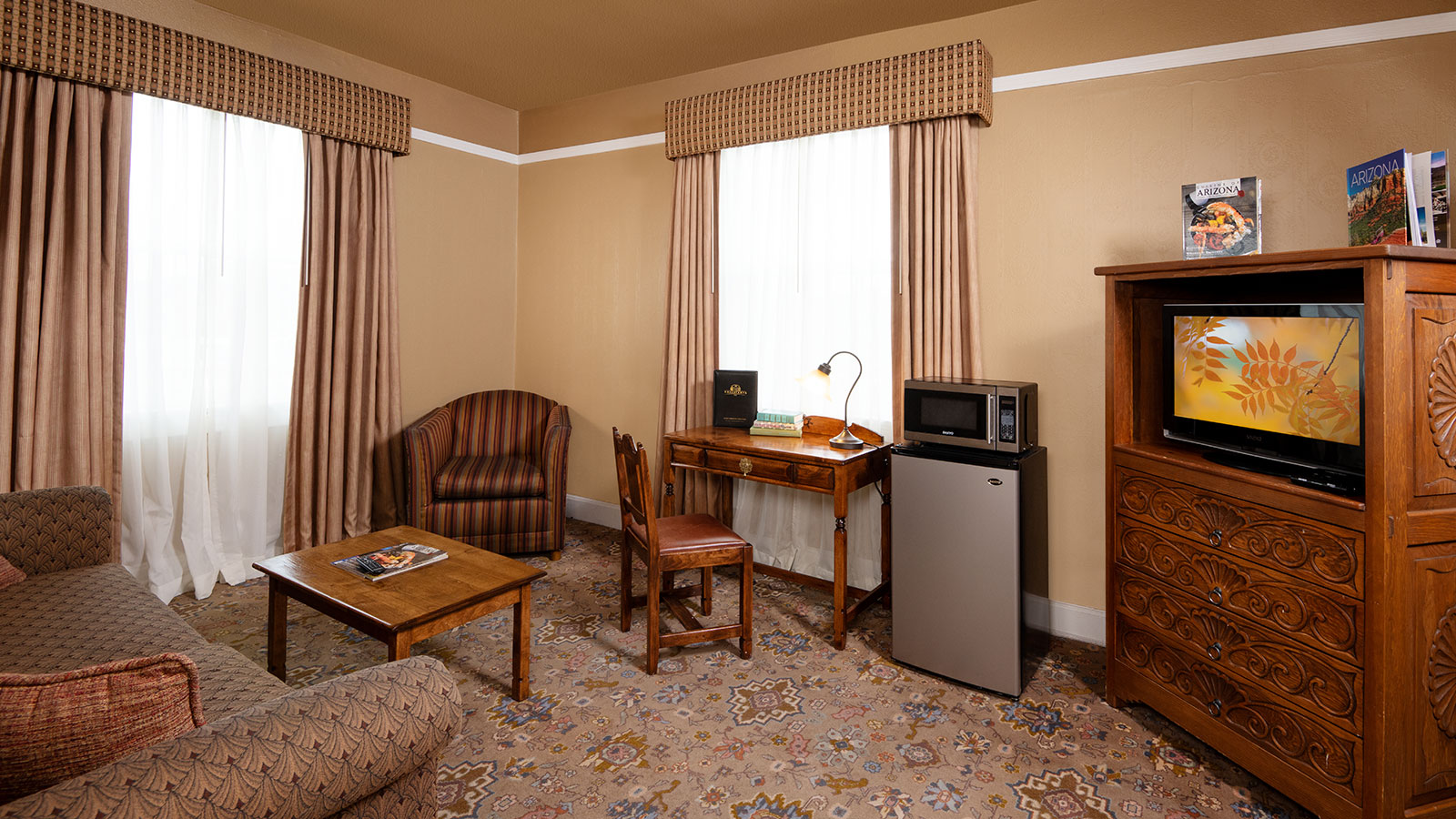 Each of the 67 stylish guestrooms, including 12 suites, offers lodging in Prescott, AZ, with classic décor that reflects a romantic Southwest style. Standard Queen guestrooms offer one queen-sized bed, while King Deluxe guestrooms offer a spacious king-sized bed and wonderful space within which to relax. Classic King guestrooms are mid-sized rooms with one king-sized bed, and Classic Double/Double guestrooms are mid-sized rooms with two double pillow-top beds.