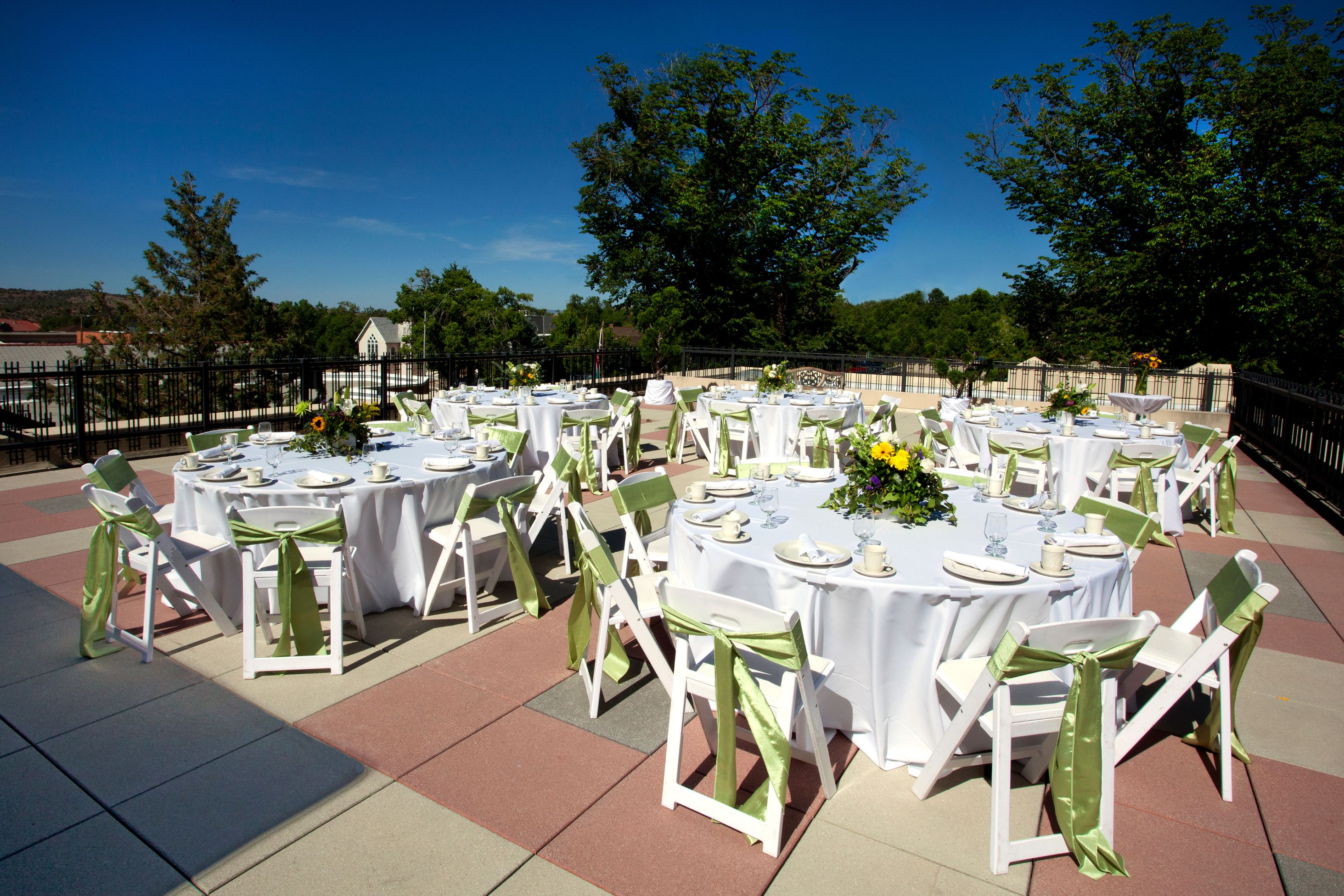 Topping the Marina Room is the Rooftop Terrace with unparalleled views of downtown Prescott and its surroundings—majestic Thumb Butte and the skyline of the Bradshaw Mountains in the distance. The perfect location for a cocktail party or summer reception, the Rooftop Terrace seats 80 for dining and overlooks the Gazebo.