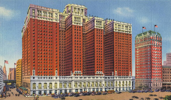 In 1945, the great hotelier Conrad Hilton purchased both The Stevens Hotel and renamed it as “The Conrad Hilton Hotel” shortly thereafter. Hilton immediately began to thoroughly transform the structure back into a luxurious hotel through a series of extensive renovations. Perhaps the most innovative of all his improvements was the installation of a large ice stage in the Boulevard Room Supper Club. By the 1960s, The Conrad Hilton Hotel even sported new facilities like the International Ballroom, the Continental Ballroom, and 53,000 square feet of additional exhibition space. Then, in 1984, the original Rooftop Ballroom was converted into the massive Conrad Hilton Suite. It cost $1.6 million to construct and boasted 5,000 total square feet spread out over two levels—the 29th and 30th. Overlooking Grant Park and Lake Michigan, the suite contained a grand salon, dining room (for 14 people), private kitchen, three gorgeous bedrooms, and a library with pool table and bar! There was even a private helipad installed on the roof! The suite was President Bill Clinton’s favorite place to stay in Chicago, as he loved the pool table during his visits to the hotel. Several films and television shows also featured The Conrad Suite, including The Fugitive, Home Alone 2, and E.R.