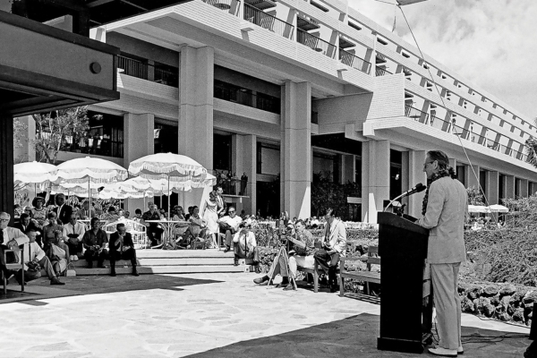 In the turquoise waters of Kauna‘oa Bay, Hawaii, Laurance S. Rockefeller, an American businessman, financier, philanthropist, and conservationist, found inspiration. It was here, amidst the lava rock and rolling hills, that he envisioned Hawaii’s first resort, a sanctuary that would honor the natural beauty of Hawaii rather than spoil it. His original vision was to construct a series of small cottages near the shoreline. However, those plans were abandoned in favor of a more (at the time) modern vision for the striking resort hotel. Architect Edward Charles Bassett of Skidmore, Owings, and Merrill designed a Midcentury Modern hotel with an open-air design, allowing natural ventilation from Hawaiian trade winds, winds that blow along the surface of the ocean from the northeast. Rockefeller’s decision to build Mauna Kea Beach Hotel was audacious. He transformed former farmland from Parker Ranch into a haven. Thousands flocked to reserve guestrooms, drawn by the promise of an unparalleled experience. The hotel’s debut in 1964 marked a milestone for the island and the hotel began its commitment to help in conservation and cultural preservation upon its inception.