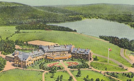 Skytop Lodge is located on some 5,500 verdant acres of woodland in Skytop, Pennsylvania. High in the Poconos, the resort sits at an elevation of 1,500 feet. Among the outdoor attractions featured around the Skytop Lounge is a historic 18-hole golf course, a 75-acre lake, and nearly 30 miles of hiking trails. The Poconos themselves are a massive mountain chain that shades the Delaware River before ending near the Lehigh Valley. Its northern reaches drift into New York, where they link up with the Catskills. Some of the summits in the Poconos can reach several hundred feet in elevation, with the highest peak measuring some 1,800 feet. People have long inhabited the region, as many Native American societies—including the Lenape, Iroquois, and Shawnee—once called the Poconos home. In 1742, English and German settlers began arriving en masse, although the Dutch had created a few outposts on the fringes of the mountain chain a century prior. Small sustenance farms populated the areas where the land was flat and the soil arable. But the Poconos were soon celebrated regionally for their serene environment. The area, thus, gradually built a reputation as a secluded retreat, with the first hotel opening in 1829. Yet, its true metamorphosis into a major holiday destination did not truly come to fruition until the mid-20th century. World War II heavily spurred this development, as American soldiers returning from overseas took their loved ones up into the mountains for a much-needed vacation. Its popularity exploded tenfold once the war ended, with families travelling from all over the nation to enjoy its natural beauty. Since the 1990s, the Poconos have been among the most cherished vacation getaways in all of America, with tens of thousands visiting every year.