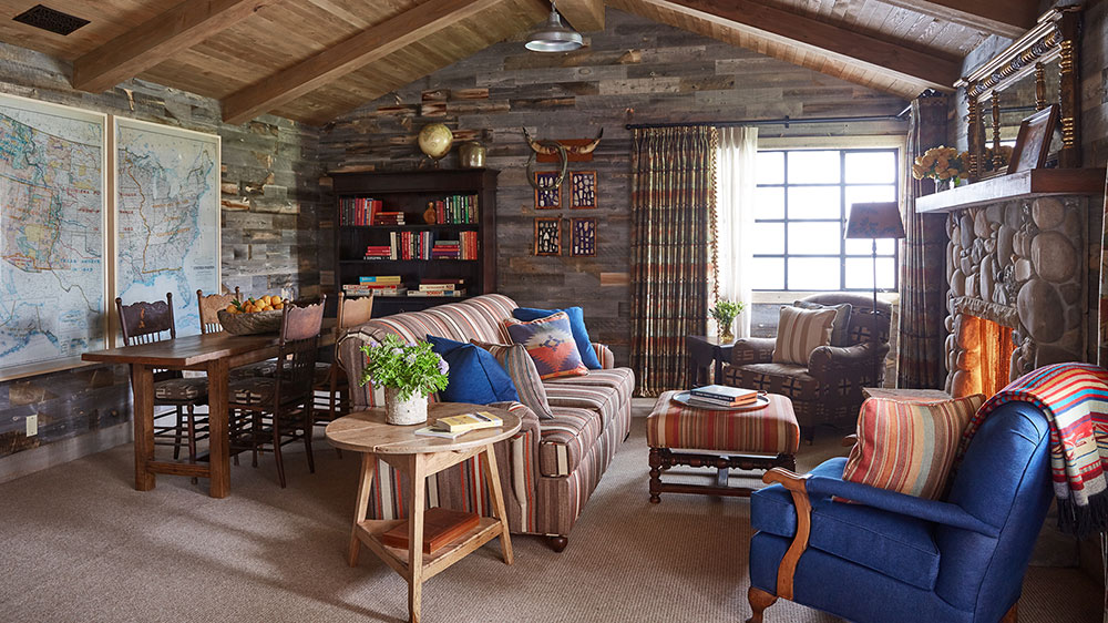 Turner House–named after interior designer Nathan Turner, who designed it–features three luxury king studio rooms each with a wood-burning fireplace and private bathroom. The shared living room is accented by reclaimed barn-wood paneling and a wood-burning fireplace. Throughout the house, vintage artwork and furniture, as well as Ralph Lauren fabrics and Pendleton accessories, create a comfortable atmosphere.