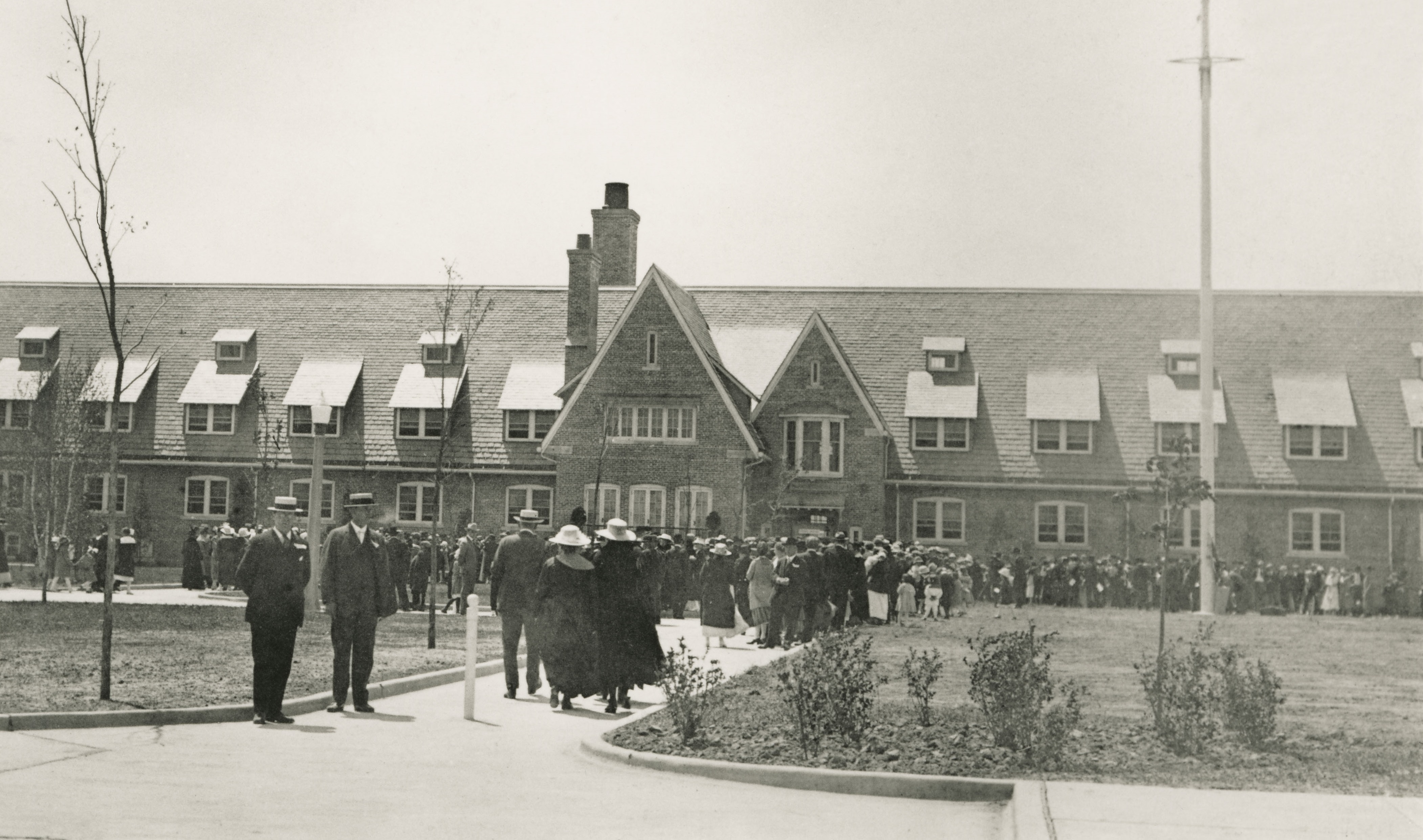 Several hundred people gathered on the lawn when Walter J. Kohler dedicated the facility on June 23, 1918. A number of those in attendance were, in fact, immigrant workers who lived in nearby Sheboygan as laborers. Most would soon become residents of The American Club, as well as employees of the Kohler Company. Charged $27.50 a month for room and board, Kohler endeavored to ensure that working conditions inside the factory were conducive for his tenants. He hoped that safe working conditions and comfortable living quarters would cultivate a studious environment within which to prepare for their American citizenship examinations. (Working at the Kohler Company was not without its setbacks, as various union strikes impacted the business during the Great Depression). Kohler even obtained special night classes for the residents at the Kohler Public School, just so they had more time to get ready. The Kohler Company subsequently sponsored the citizenship of dozens of immigrants each year, transporting large groups down to the county courthouse on every “Americanization Day.” Afterward, the proud individuals had their pictures taken on the balcony of the Lincoln Room in honor of the achievement. Special banquets were held throughout the course of the day as well, given specifically to the recently “naturalized” Americans. By 1930, the Kohler Company estimated that it had helped nearly 700 émigrés successfully pass their citizenship tests. Even after Walter J. Kohler’s death in 1940, this patriotic zeal continued to permeate throughout The American Club. More immigrants continued to arrive at The American Club to use its resources as a means of obtaining citizenship. Over time, those enterprising individuals moved out into the surrounding community, where their descendants continued to live for generations.