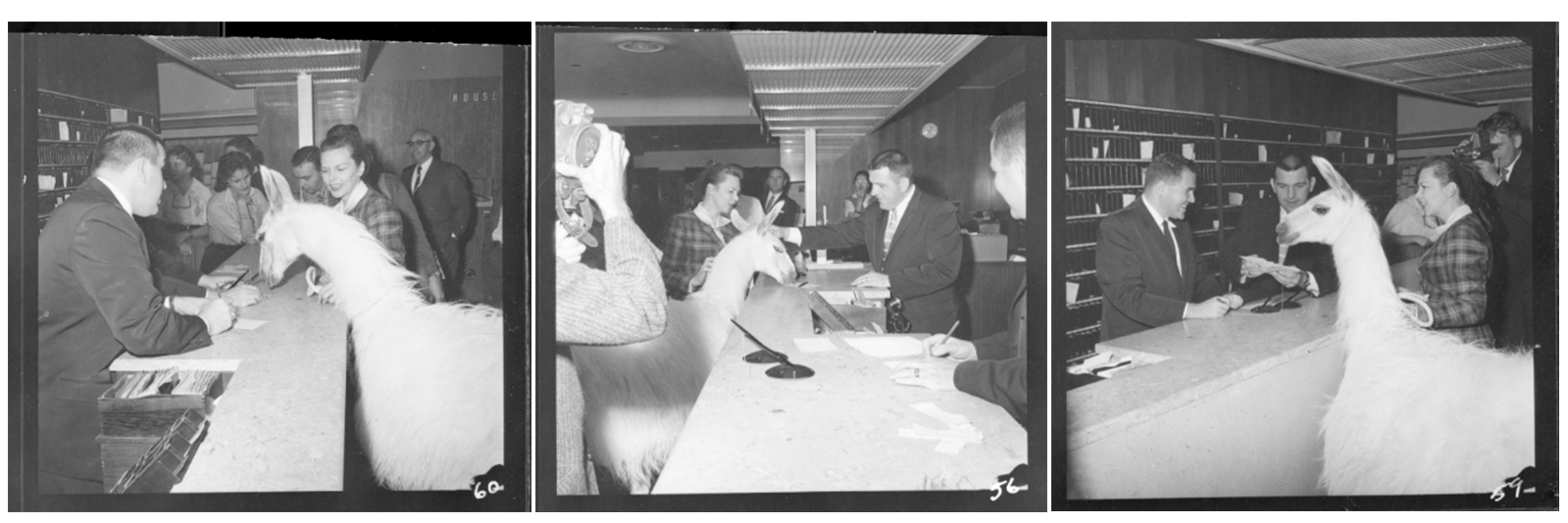 ![]() ‘High-paid llama in big city.’ LIFE Magazine, 2 December 1957. |