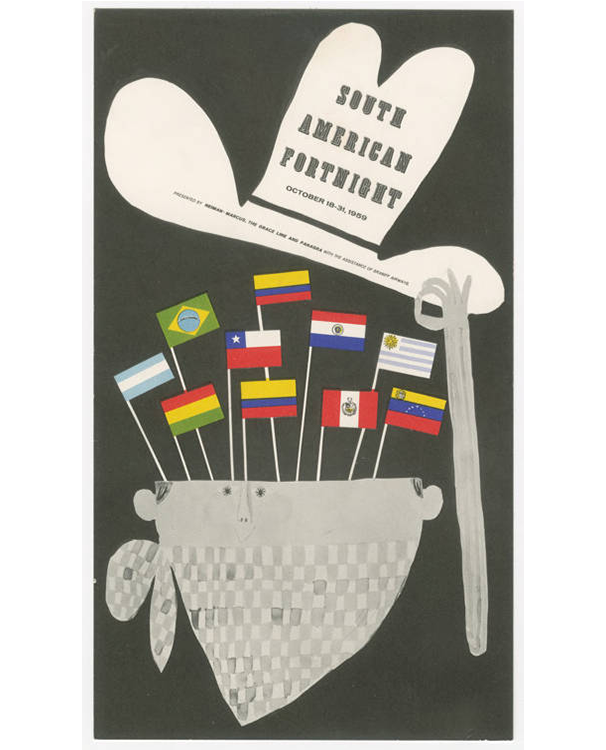 ![]() Poster advertising Neiman Marcus' South American Fortnight. Sourced from DeGolyer Library, Southern Methodist University. |