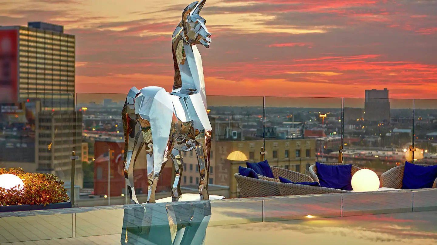 Conrad Hilton himself extended an invitation for Llinda to stay at The Statler during the Fortnight, even sending a luxurious Cadillac limousine to pick her up from the Dallas International Airport. The staff reportedly enjoyed her company so much that they requested she extend her stay for a full two weeks. Today, a life-sized polished chrome statue of Llinda resides on The Statler’s rooftop where she can enjoy the stunning views of the Dallas skyline. Guests can visit her while sipping delicious cocktails from Waterproof, The Statler’s exclusive rooftop bar.