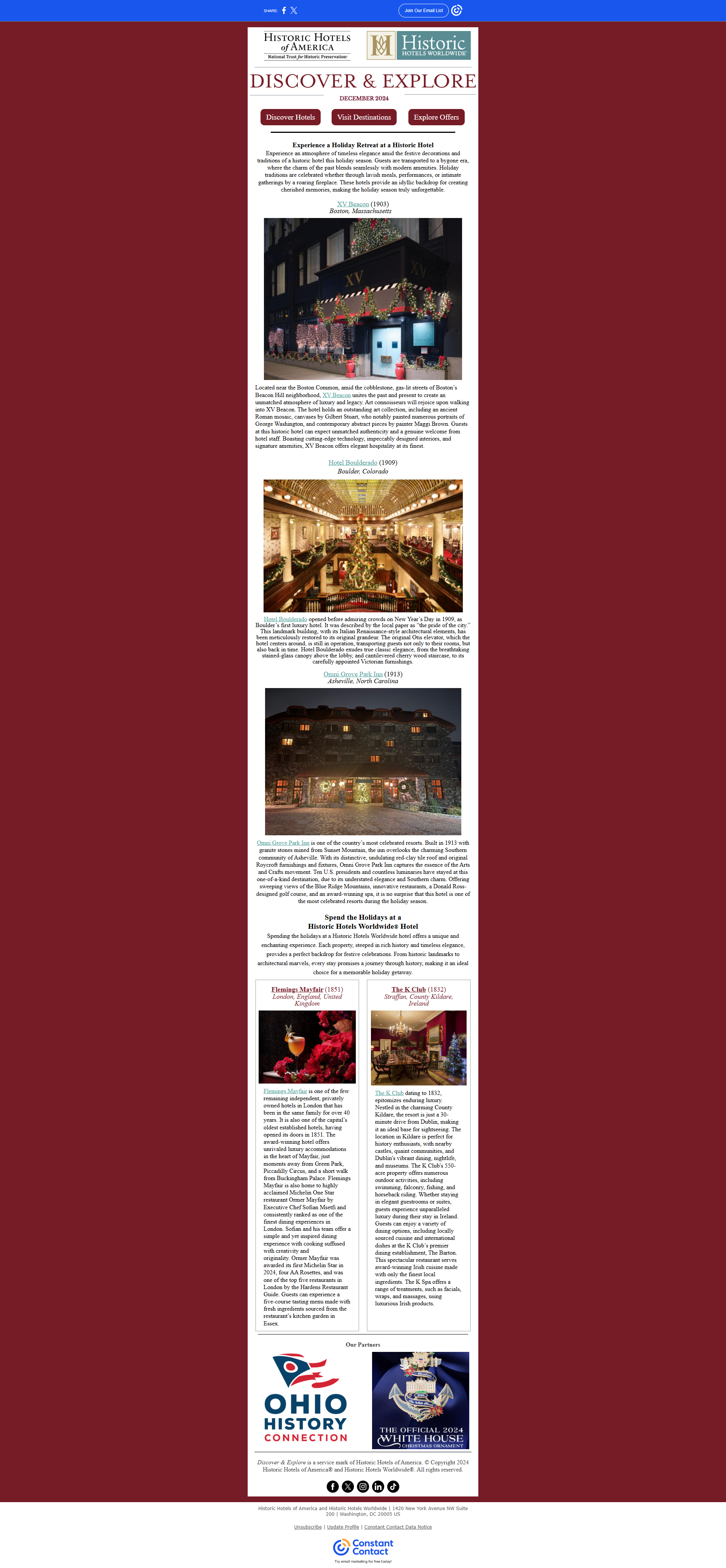 December 2024: Spend the Holidays at a Historic Hotel