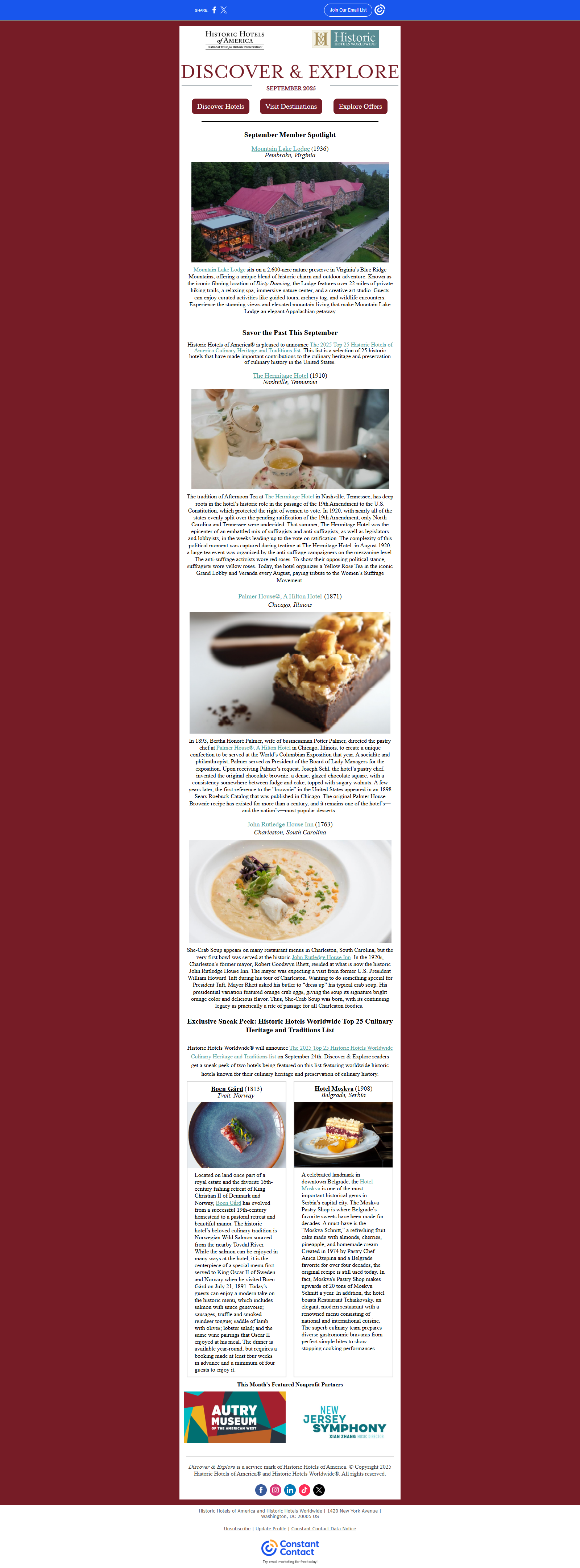 Receive for Free - Discover & Explore eNewsletter monthly with advance notice of special offers, packages, and insider savings from 10% - 30% off Best Available Rates at selected hotels.